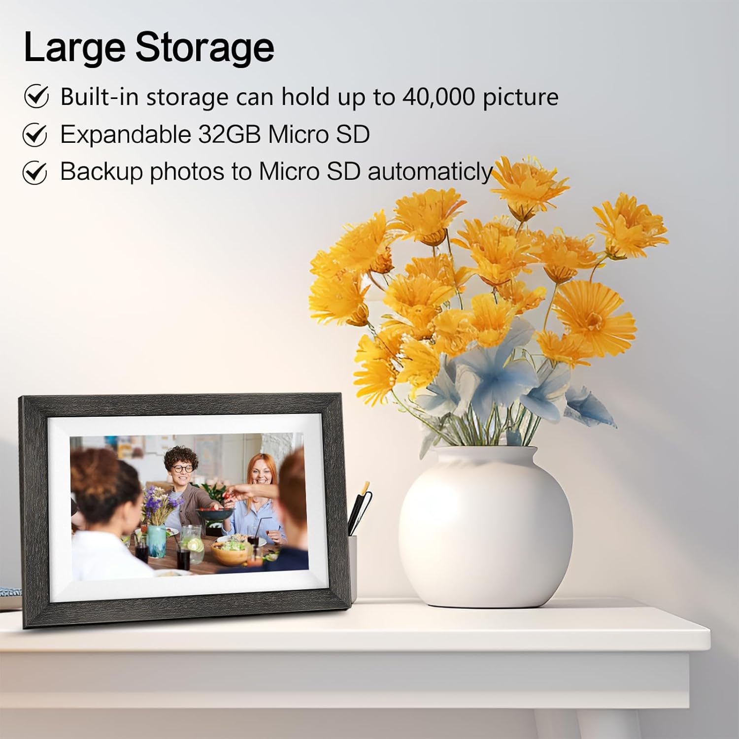 Frameo Digital Photo Frame,10.1 Inch WiFi Smart Digital Picture Frame with HD IPS Touch Screen,Auto-Rotate,Send Pictures from Anywhere via Frameo APP(Wood Effect)