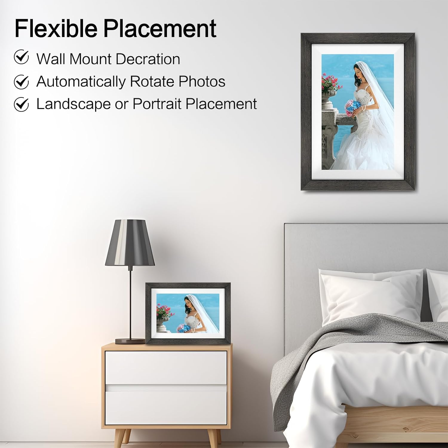 AUTOMATIC ROTATION AND STYLISH DESIGN:Digital photo album has a wooden frame design that will look great with your other picture frames. You can place the digital photo frames in either portrait or landscape mode. It will automatically rotate photos to adjust the direction to fit the frame perfectly, making it the perfect choice for your living room, bedroom, or office décor.