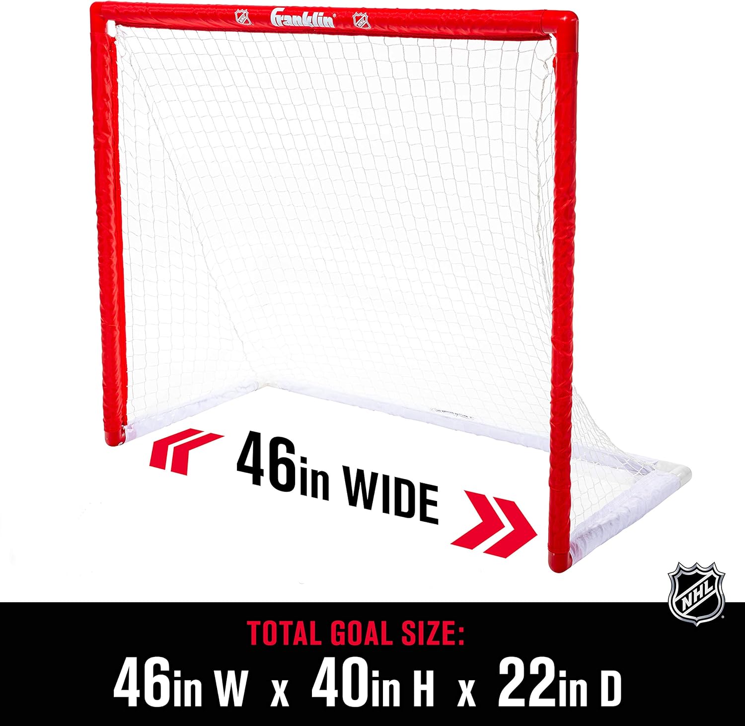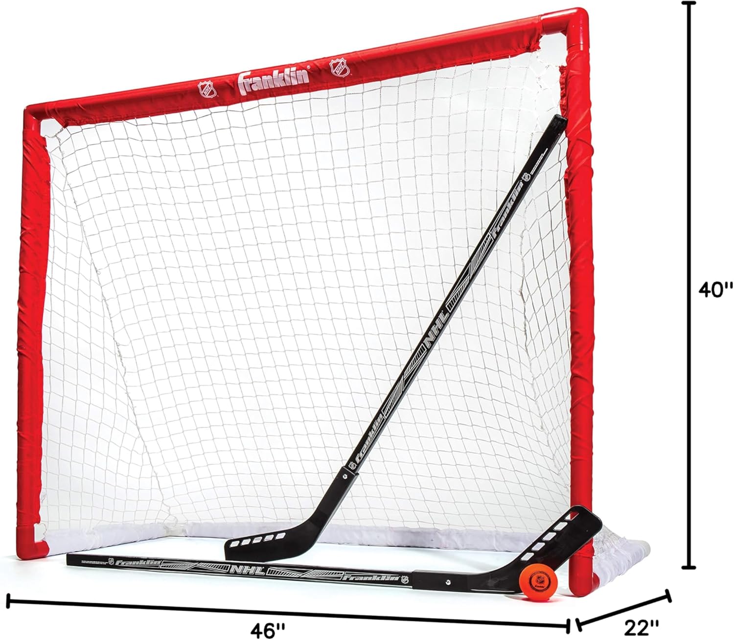 Franklin Sports NHL Youth Street Hockey Set – (2) Kids Junior Hockey Sticks, PVC Goal + Roller Hockey Ball Included – Indoor + Outdoor Net – 46″, Red