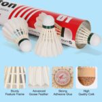 12-pack Badminton Shuttlecocks: Equipped with 16 pieces of fine goose feathers, lightweight to provide smooth and even flight.