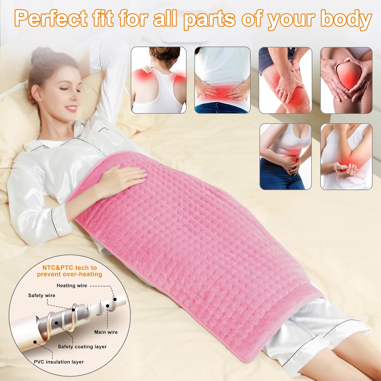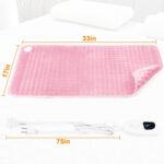 Heating Pad Size and Beautiful Colors:We heating pad have different sizes for you to choose from, including 12”x24”, 20”x24 ”and 17”x33”,you can find a heating pad size that is more suitable for you here. The rich and colorful colors give you more choices. With 75 inch power cord,you can comfortably lounge on the couch or relax in bed. (Do not use as a seat cushion)
