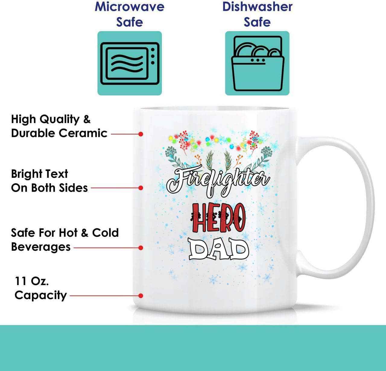 Hero-themed Funny Firefighter Gift for Dad – Fire Fighting Equipment for Father’s Day – 11 Oz White Ceramic Coffee Mug