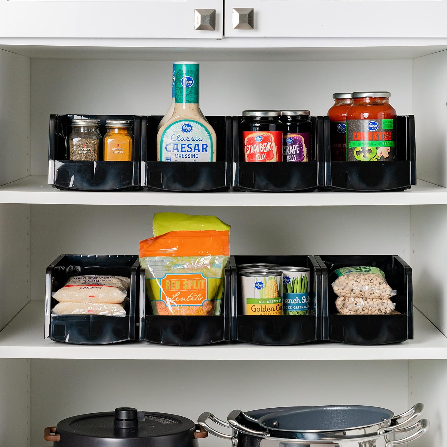 Customers find the storage bins highly functional and appreciate their storage capacity, particularly for snacks in small cabinet spaces. They look good and offer good value, though opinions on durability and stackability are mixed – while some say they’re sturdy enough at first and stack nicely, others report they break easily and won’t stay stacked. The size receives mixed feedback, with some finding them too small.