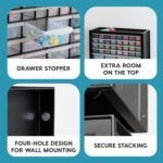 STACK OR WALL MOUNT: The cabinet’s grooves on the lid securely lock in one on top of another when stacked. It can be wall-mounted and used to organize screws, hardware, tools, and small parts.