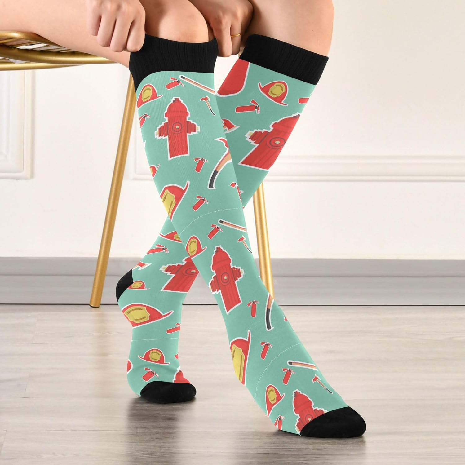 JUNZAN Fire Fighting Equipment Compression Socks for Women Men Circulation Long Socks for Running Cycling Athletic Nurse