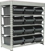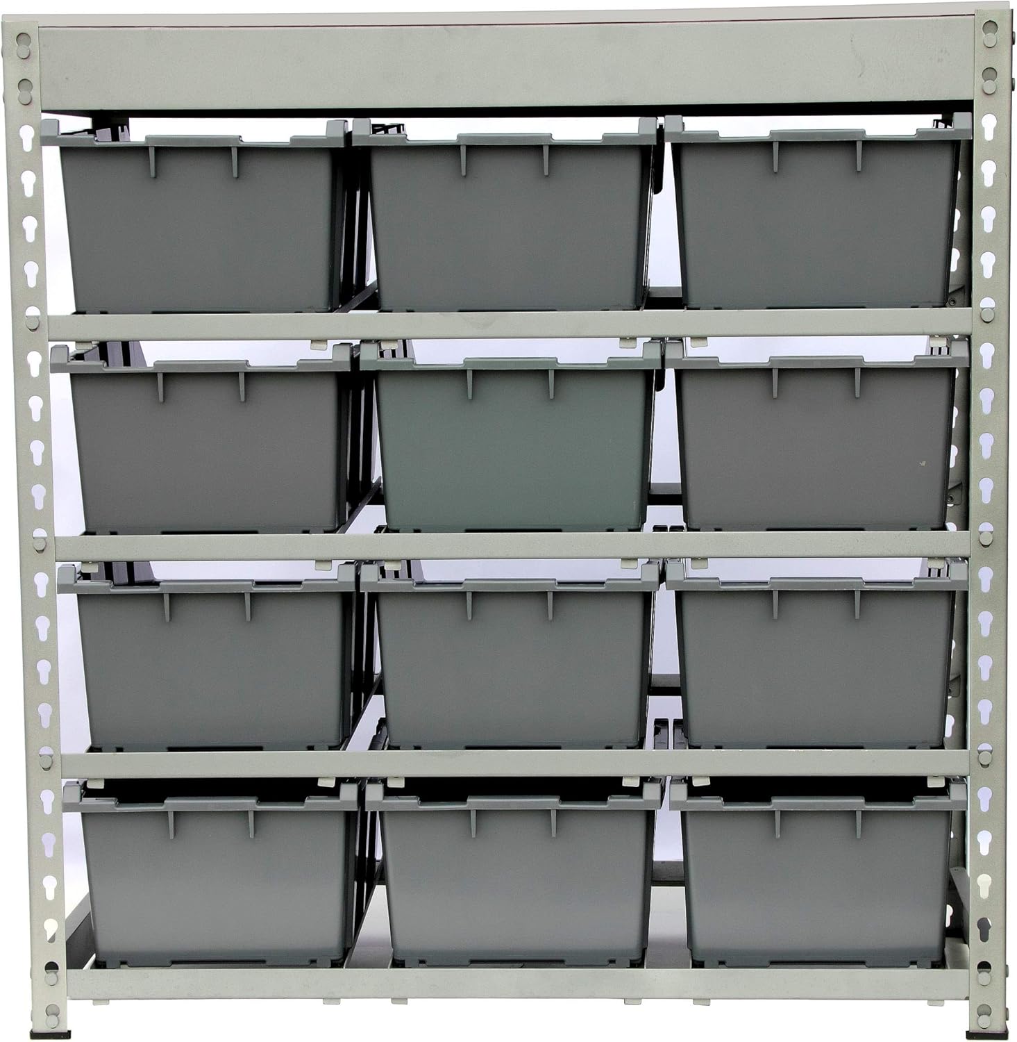 King’s Rack Bin Rack Boltless Steel Storage System Organizer w/ 12 Plastic Bins in 4 Tiers