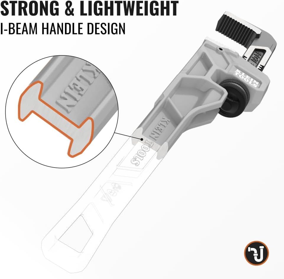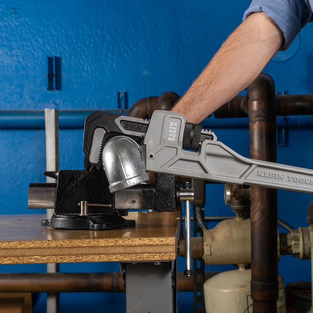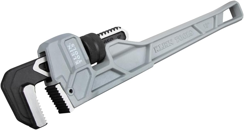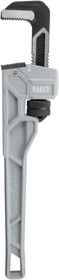 The Klein Tools Cast Aluminum Pipe Wrench is both durable and lightweight. The 18-Inch I-beam handle design allows for heavy-duty, high-torque application. Offering a versatile gripping range, the wrench adjusts to fit up to 2-1/2-Inch (6 cm) pipes. For more than 160 years, Klein Tools has manufactured premium-quality, professional-grade hand tools that deliver the performance, durability and precision needed to get the job done right. Our family of engineers, workers and craftsman continue to put six generations of expertise into every tool we create by using only the highest quality materials, superior workmanship, and keeping manufacturing as close to home as we can. Klein isn’t just the name of our company, it’s also our family name. And since we’re an American company that’s family-owned and family-run, you know you can count on us to be here tomorrow. Klein Tools doesn’t just make great products, we make great products that stand up to the demands of the professionals who use them every day … Since 1857.