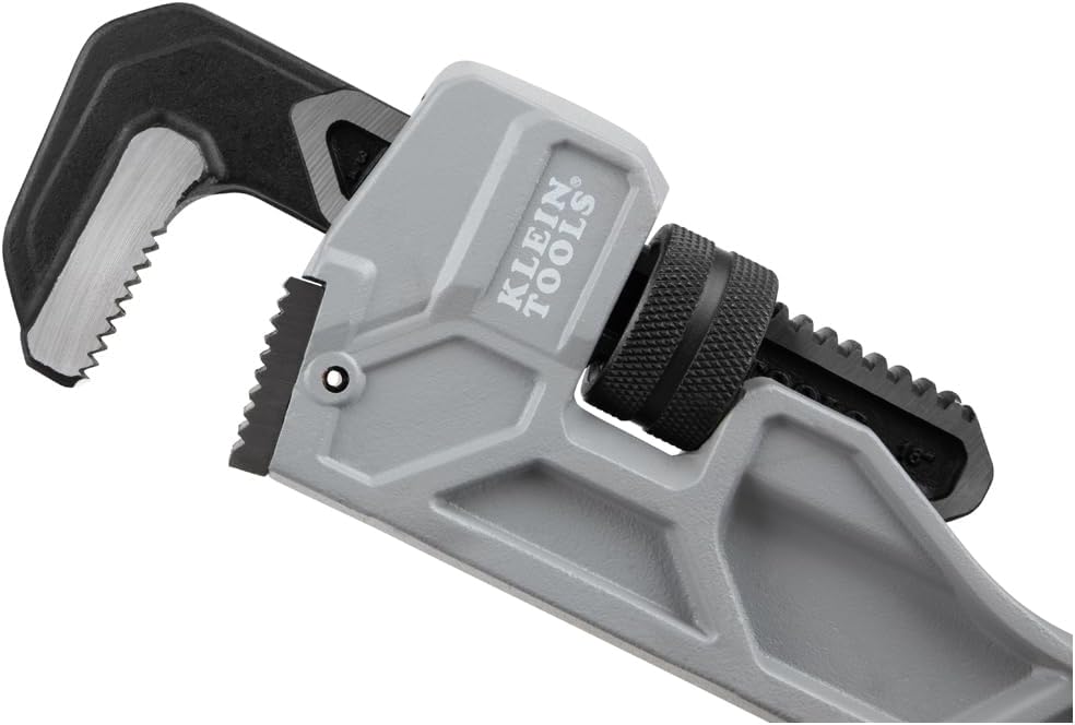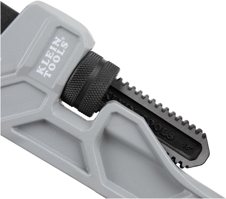 18-INCH ALUMINUM PIPE WRENCH: Lightweight, durable cast aluminum build with an I-beam handle