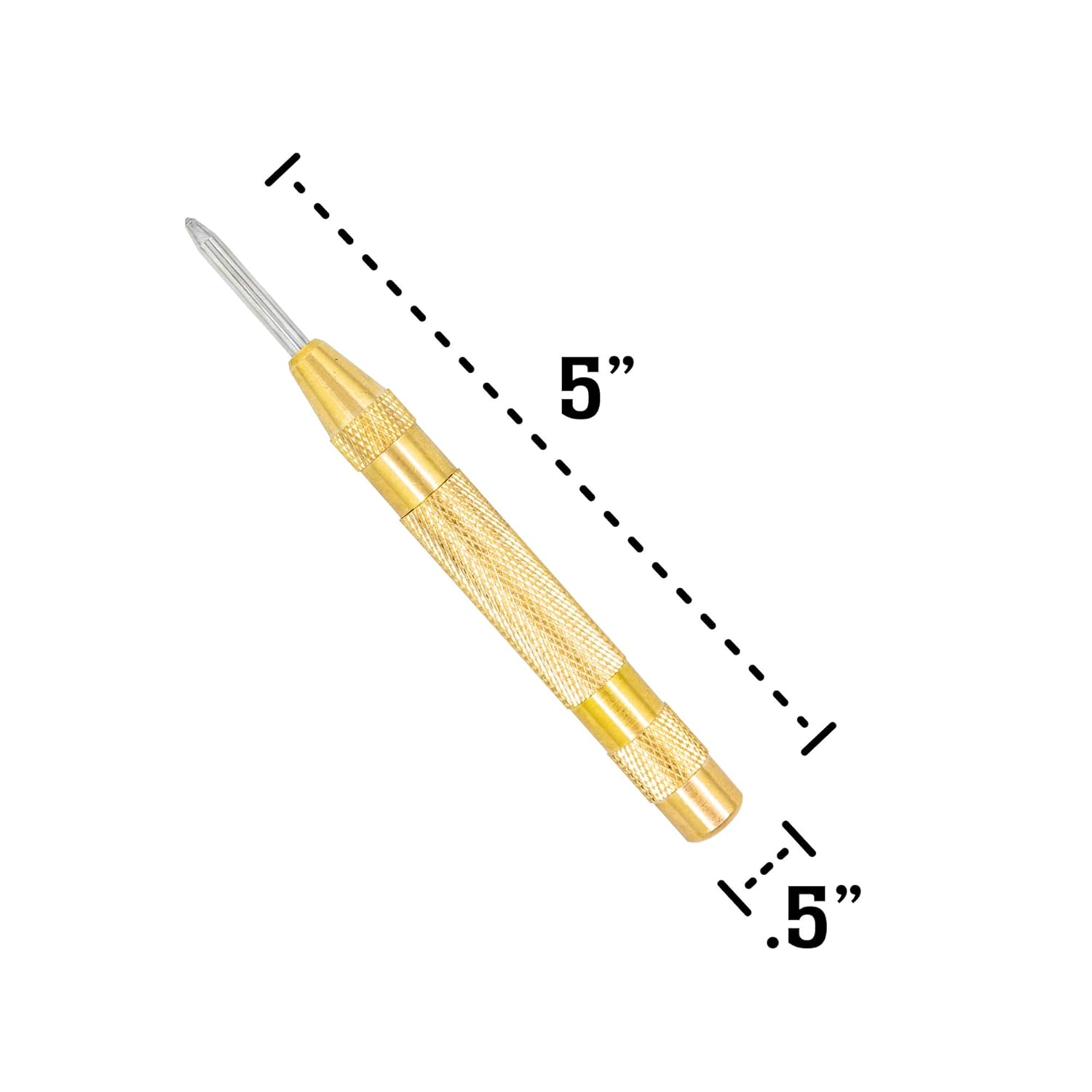 The center punch is easy to use because the Forge Industrial brass center punch has an adjustable tension screw you will be able to get it just right so you can use with a simple one hand operation. No more hammering! Changing the diameter of spring, the material can change amount of force applied.Spring loaded center punch has a deeply knurled surface for Nonslip control.