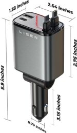 LISEN 4 in 1 Retractable Car Charger (5.9 x 2.64 x 1.38 inches) combines a compact design with powerful performance. Its 160° rotating plug fits standard 12V vehicle sockets up to 0.9 inches wide and 2.76 inches deep. The retractable cord extends up to 31.5 inches, making it ideal for long trips, tight spaces like semi-truck cabins, or everyday use. A practical choice for personal needs or as a holiday gift (Christmas/Thanksgiving, Easter basket essentials, St Patricks Day accessories), this charger delivers convenience and reliability on the go