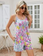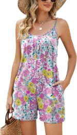 LOMON Womens Casual Summer Sleeveless Romper Loose Adjustable Spaghetti Strap Stretchy Shorts Jumpsuits with Pockets