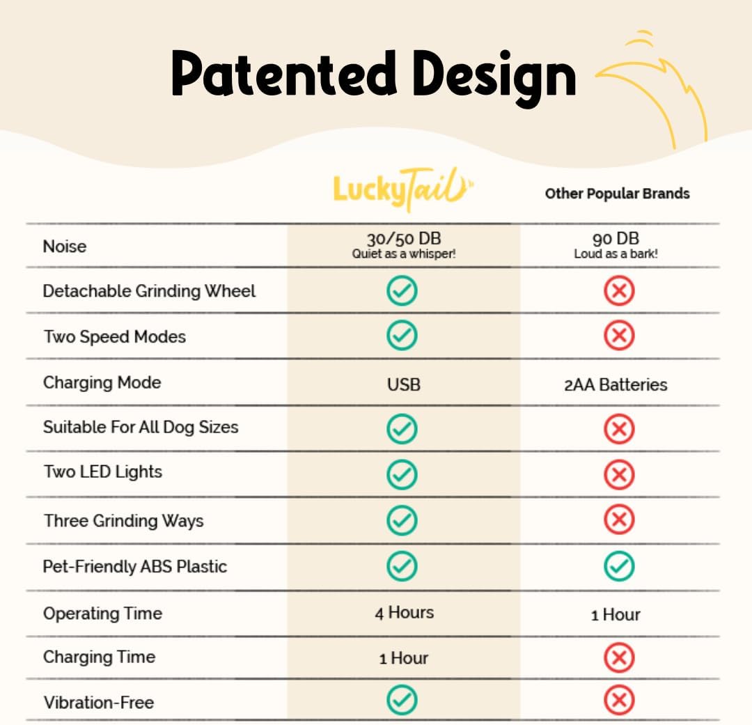 Patented Design: With our unique and innovative design, we created the gentlest and quietest electric nail grinder for dogs and cats. At 30 – 45 DBs our dog and cat nail grinder omits half the sound compared to popular competitors at 110 DBs. You and your furry bestie can finally say goodbye to stressful nail trims.