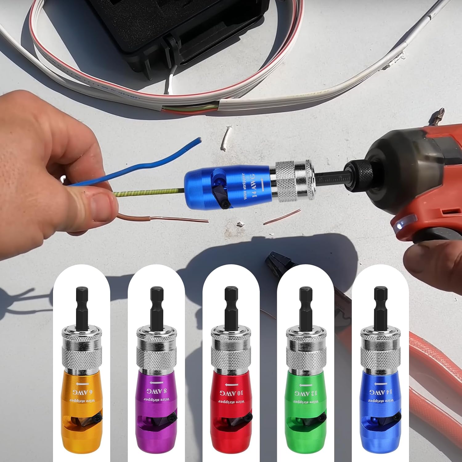 [Wide Application] – Drill wire stripper and twister kit tool are made of 1/4″ hexagonal shank, which is suitable for most electric drills, Capable of meeting everyday wire stripping and stranding needs, it easily handles a wide range of stripping and stranding tasks, whether it’s for home maintenance, electrician work or industrial production.