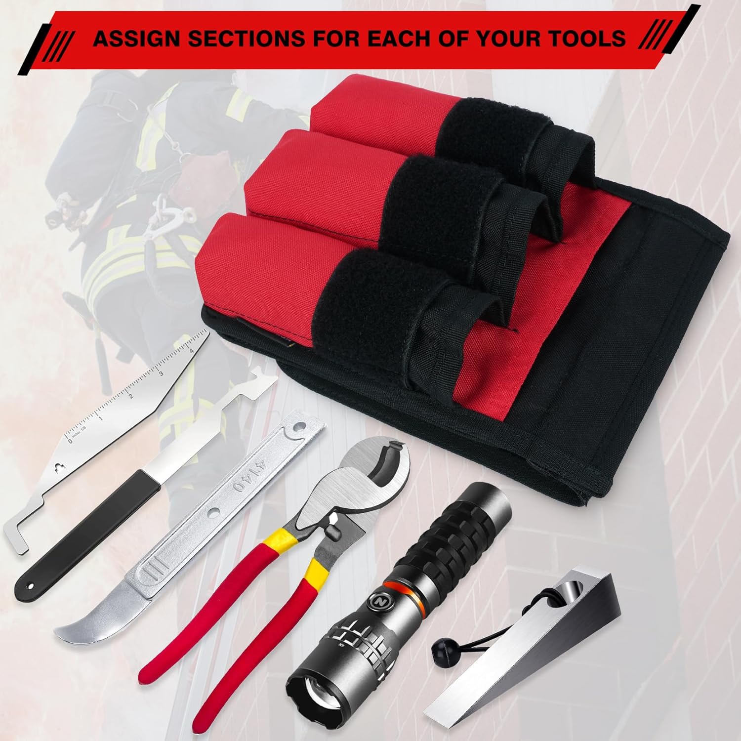 【EFFICIENT ORGANIZATION】: Our tool pouch has 7 compartments that provide enough storage space. These pockets can be categorized to store different firefighter tools, such as wedges, pliers, screwdrivers, wire cutters, flashlights, etc., ensuring that firefighters can quickly find what they want