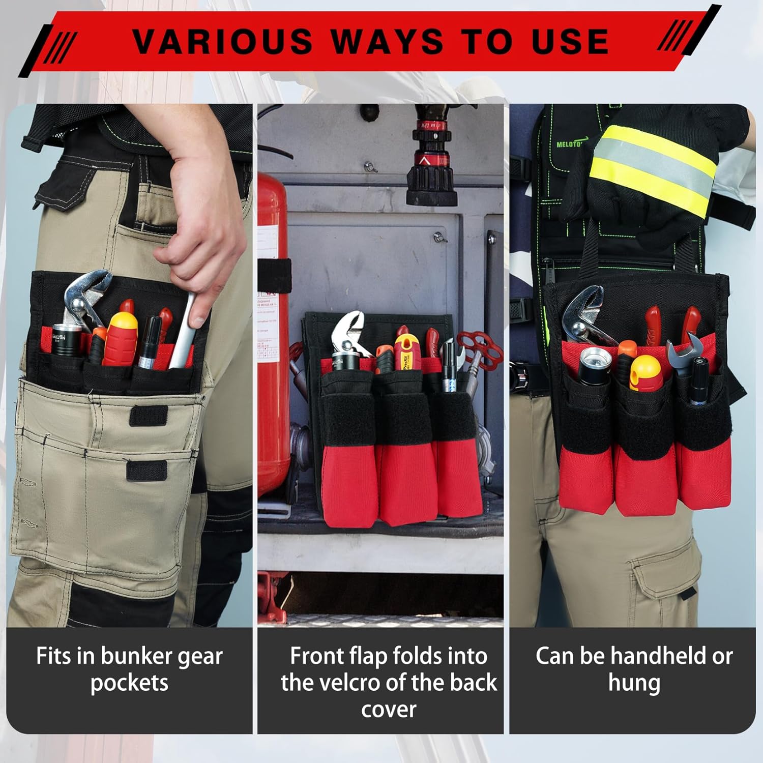 MELOTOUGH 7-Pocket Firefighter Tool Pouch with Carry Handle and Flap, Fits in Bunker Gear Pocket, Tool Organizer