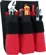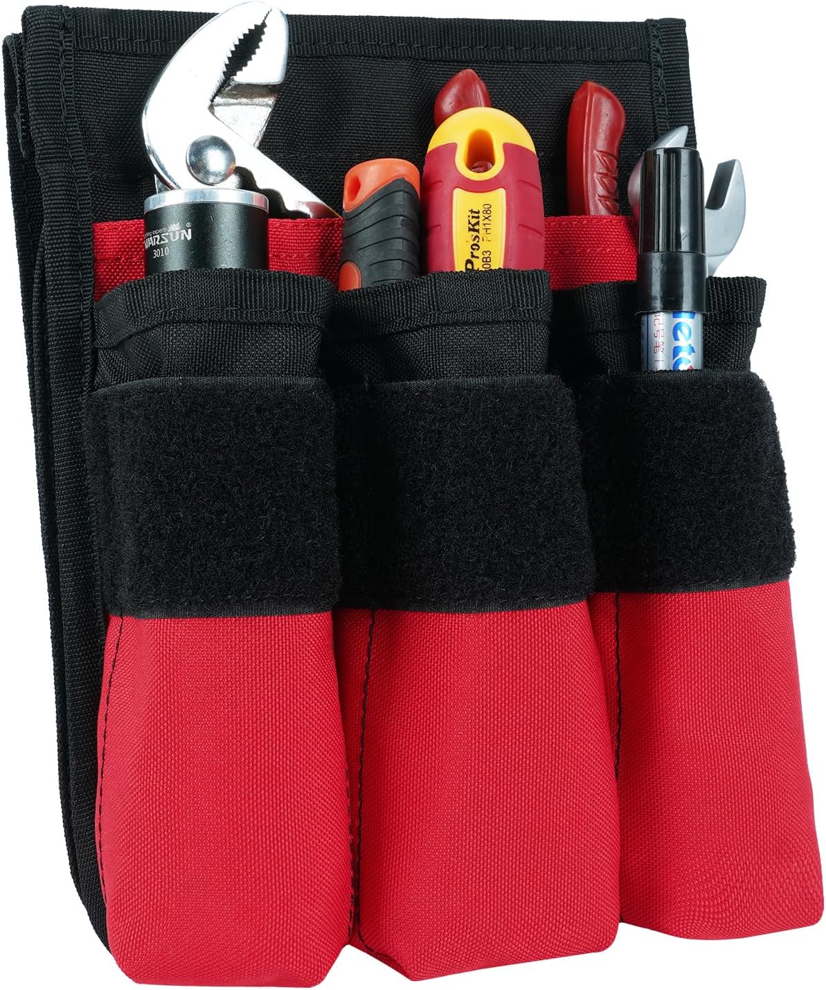 【FLAP DESIGN】: This pocket tool pouch features a flip-top design, removable velcro front cover prevents tools from falling out ,you can use the pouch with or without it. The back cover prevents the tool kit from deforming.