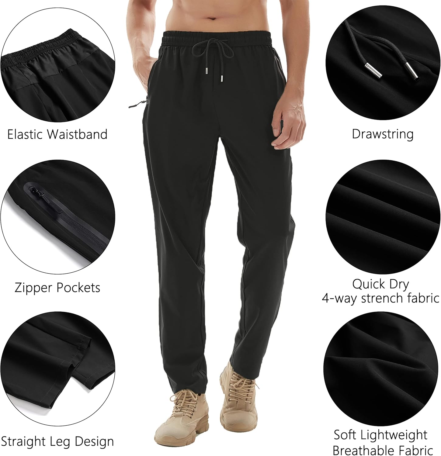 Men’s Lightweight Quick Dry Hiking Running Pants Outdoor Sports Breathable Zipper Pockets Athletic Work Pants