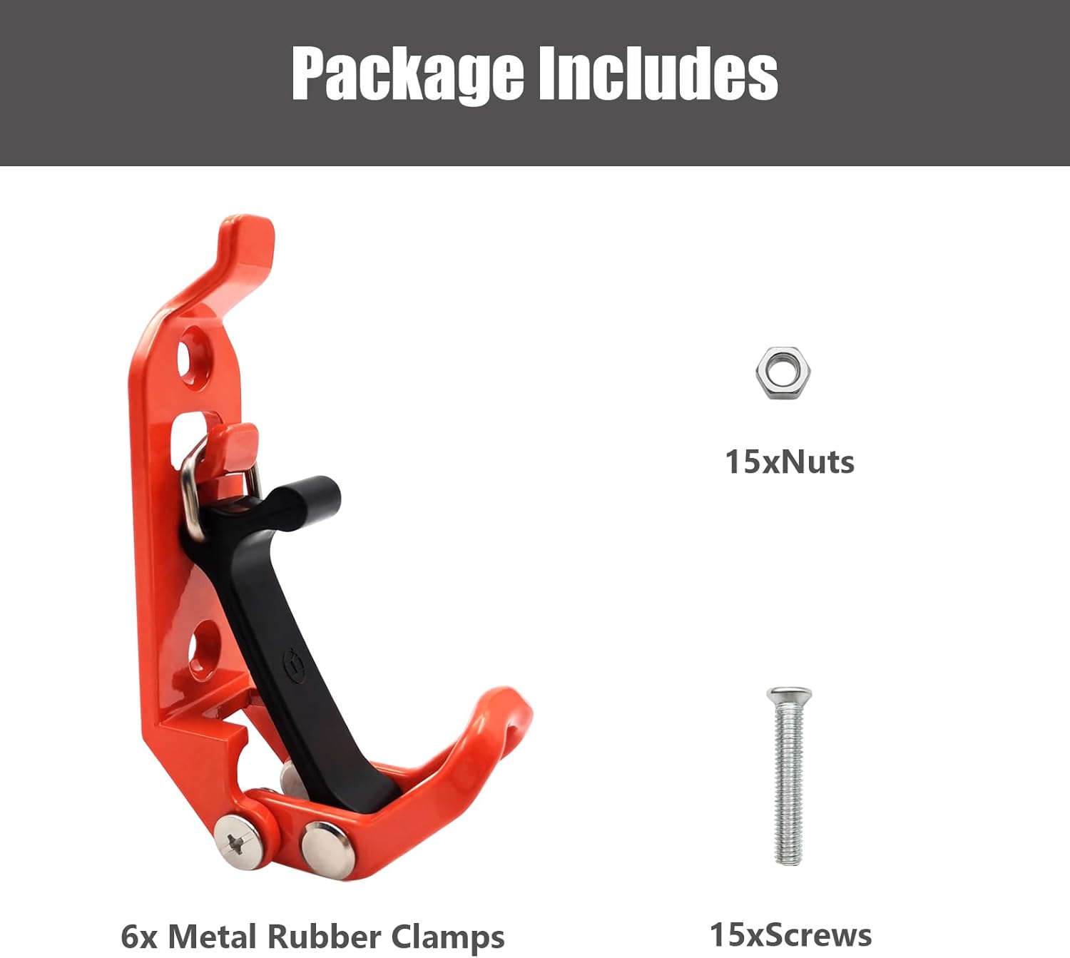 【Wide Application】Install metal rubber clamp mount kit on roof rack, track bed rack to keep shovel, axes, hammer, rake, hoses, military equipment, Fire fighting equipment securely in place; Widely applied on work vehicles, trailers, off road vehicles, trucks, military equipment, 4 x 4s, ATVs, RVs, boats, Garage, utility room or other walls.