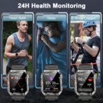👍【Military Standard Quality & 100 Day+ Ultra-Long Life Battery】- The frame of the military smart watch for men is made from a special aluminum alloy material,successfully passed 12 military tests, is rugged, waterproof, dustproof, and can handle all the extreme environments.with a battery capacity of up to 900mAh, 5 times of traditional smartwatches. Offers 100 days standby time and 30 days for daily usage, say goodbey to frequent charge, no more need to bring so much cables for long trip!