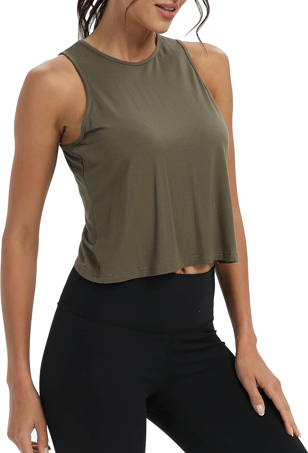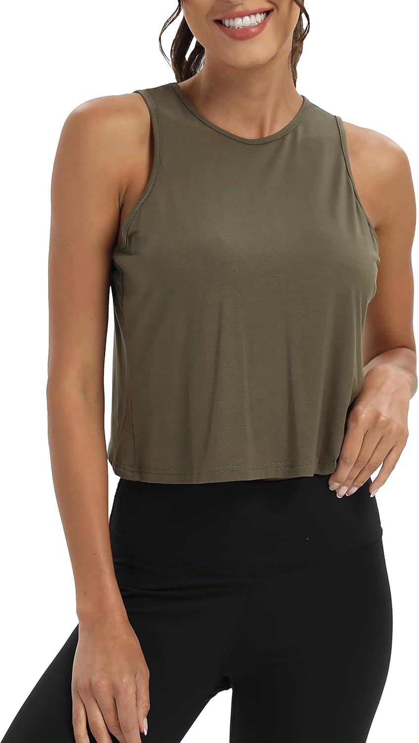 Mippo Workout Tops for Women Cropped Open Back Sleeveless Tank Tops Athletic Gym Yoga Shirts Loose Fit