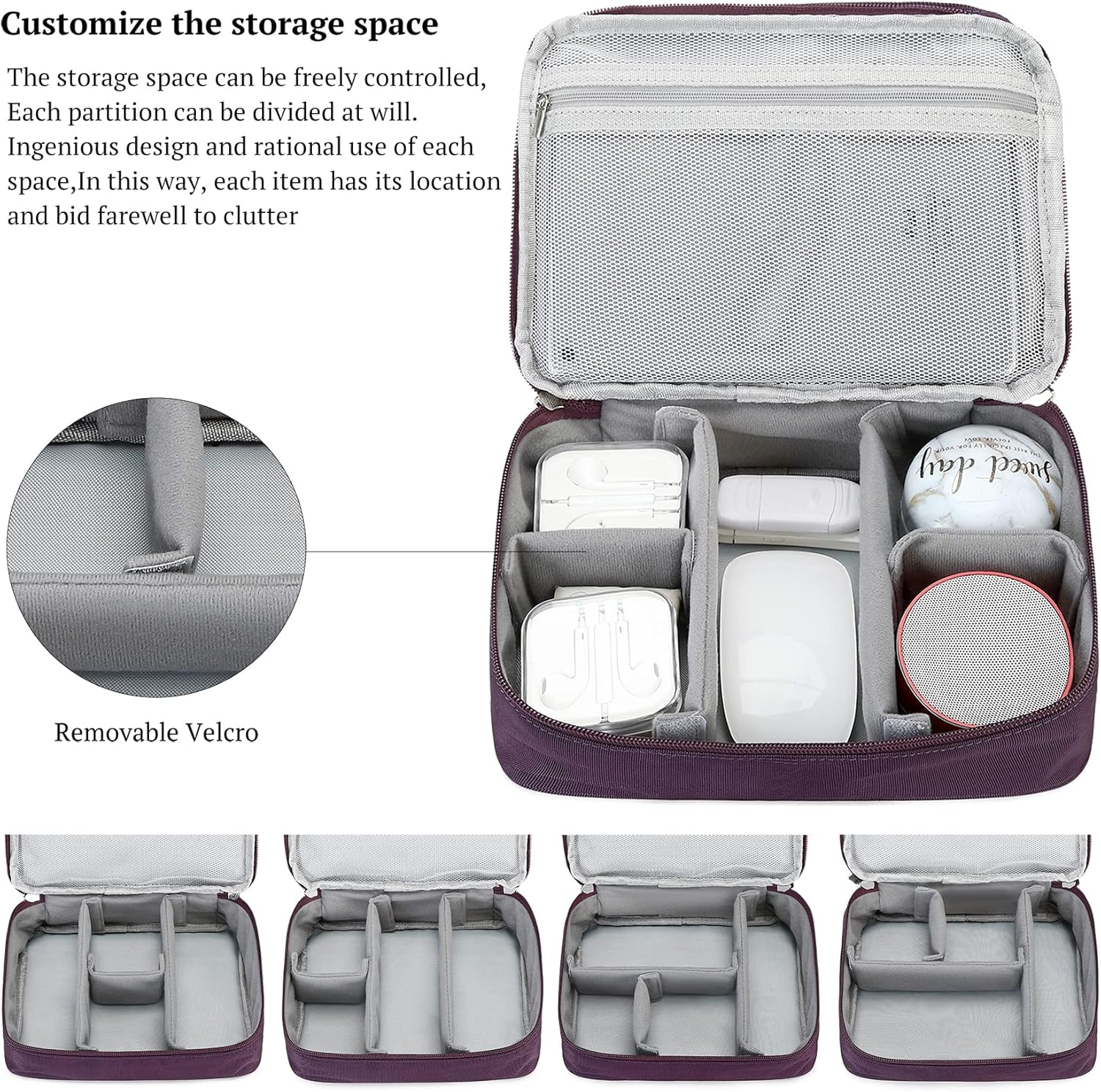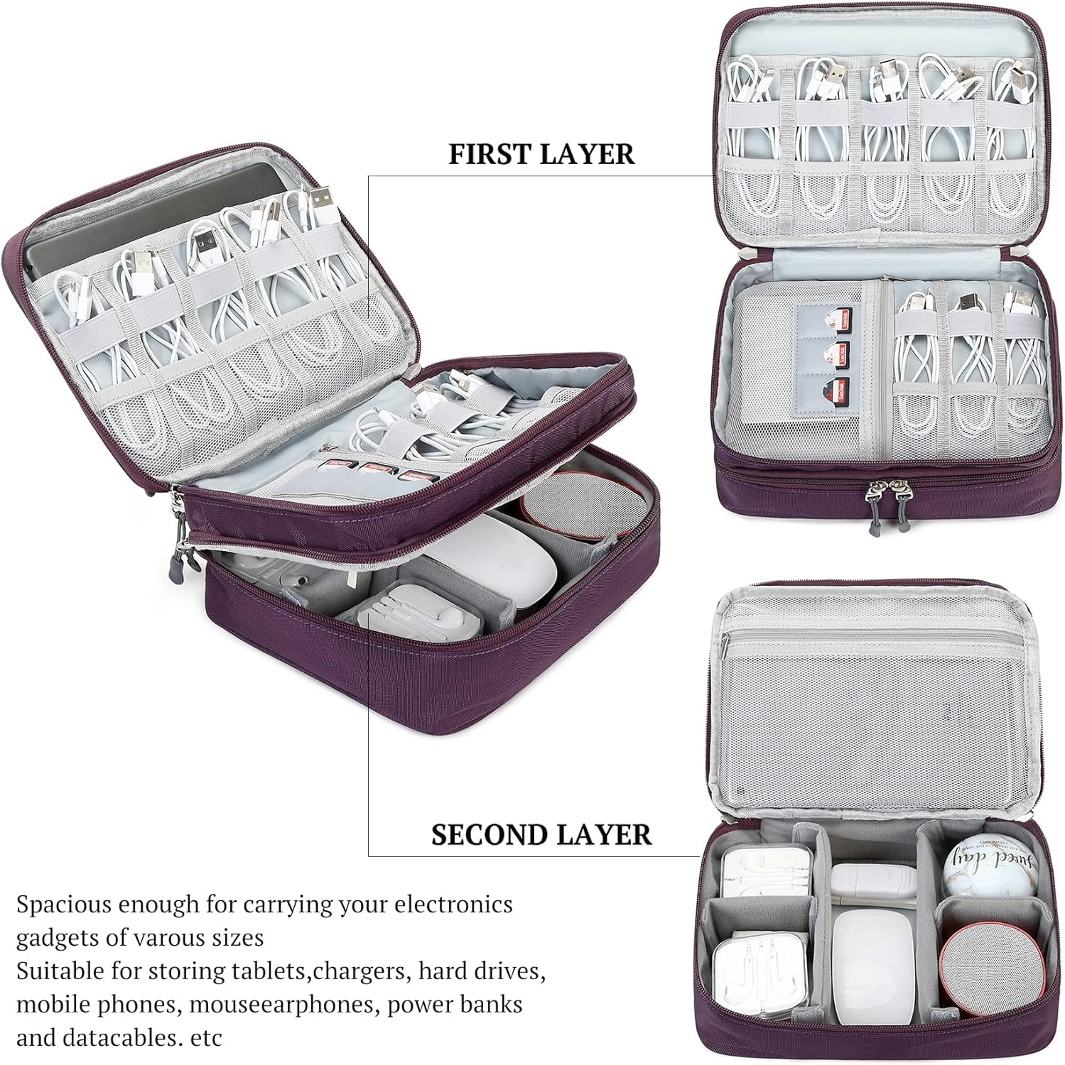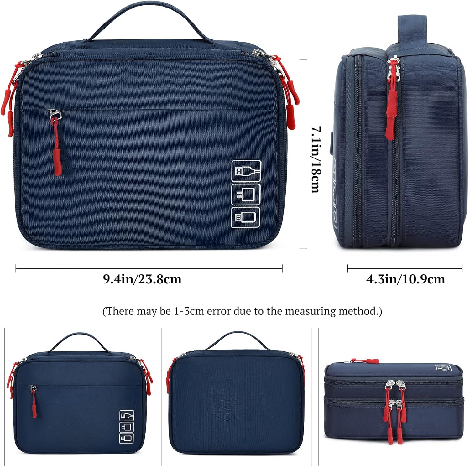 Large Capacity: L9.4*W7.1*H4.3 inches (24*18*11 CM). Double layers design has enough space to store your chargers, cables, adapters, power bank, earphones, sd card, mouse, wireless charging-pads, cords, smartwatch and any small electronic accessiories.