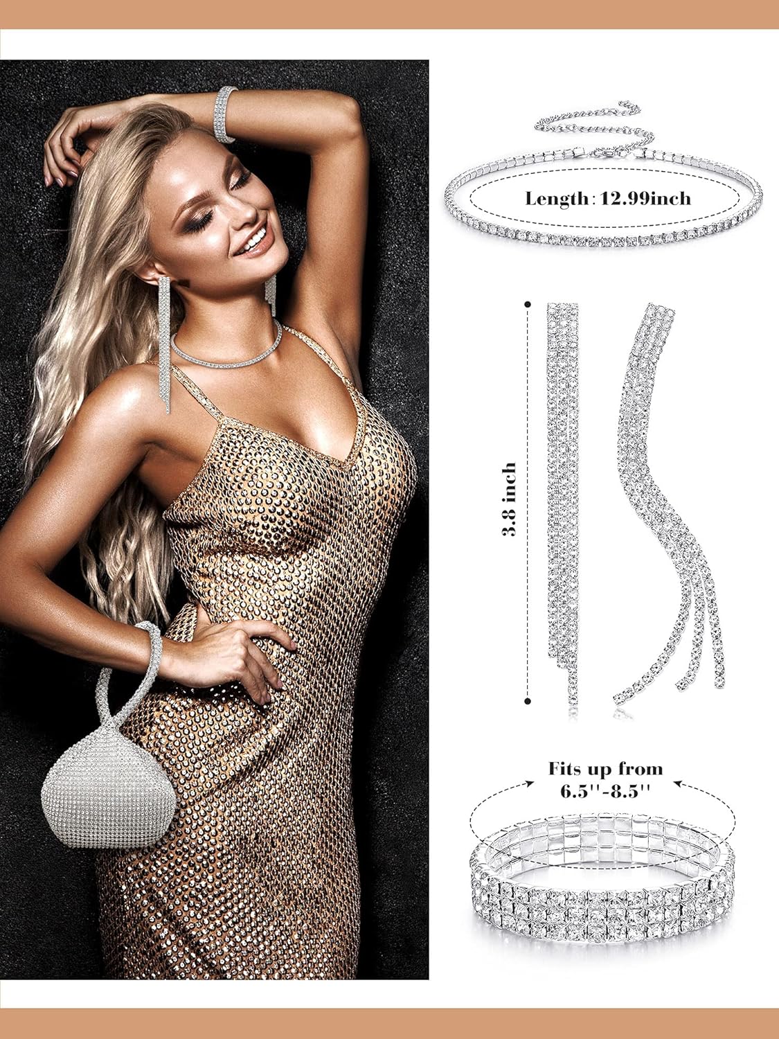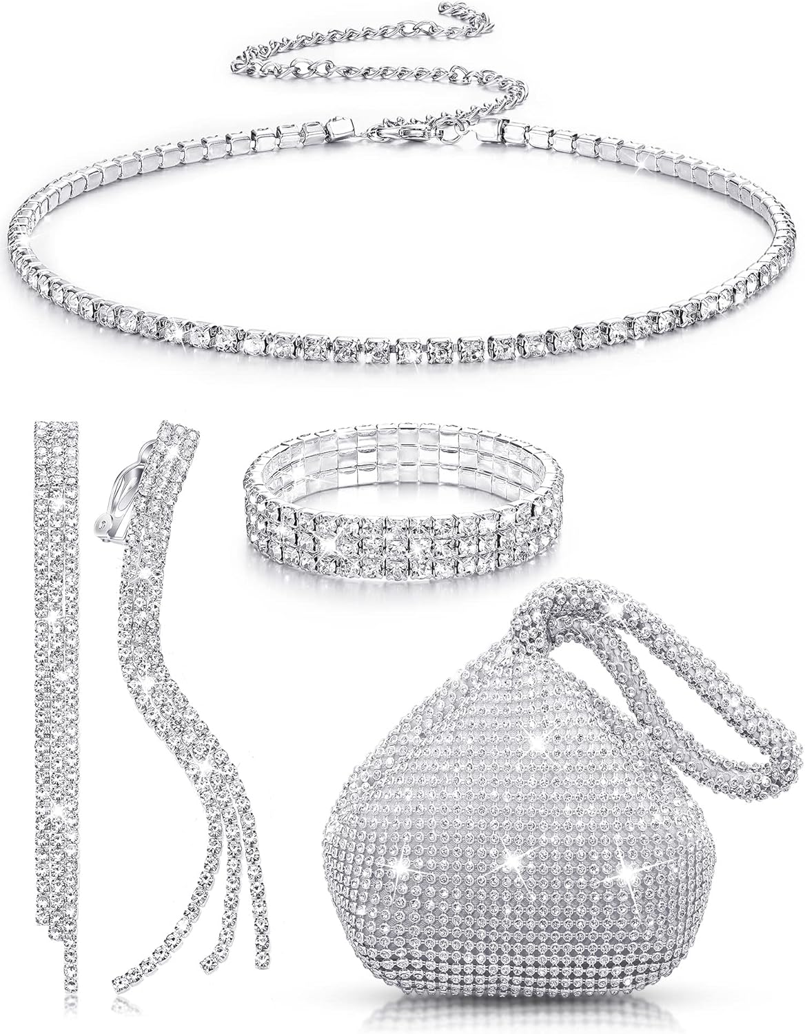 The jewelry set is decorated with glitter beaded rhinestones, looks delicate and stylish especially under light, which can match with most formal or casual wear like evening dresses, making you look elegant and charming.