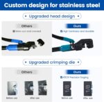 【Prolonged Lifespan】 This hydraulic crimping tool’s cast steel head is forged from 5140 steel and tempered at high temperatures to reduce the risk of fracture, thereby prolong our crimping tool’s lifespan to accommodate extended usage in cable railing projects. The hardened steel dies make hexagonal crimping on cable railing fittings for neat looks and tight crimps. With their robust material, these dies can also easily crimp aluminum ferrules or copper