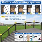 【Advice for constructing a system】 To help you construct a whole black wood system, we recommend the following product combinations from Muzata, including with 1/8″ black toggle turnbuckle MUZATA CK07, black adhesive washer CR67, black level protector sleeve Muzata CR88, ID-1/8″ vinyl coated black wire rope WR17, hydraulic crimper CR09, cable cutter CR12, drill guide CT09