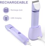 OLOV Electric Body Hair Trimmer – Groin Trimmer for Men – Bikini Trimmer Women – Wet/Dry Shaver Groomer, Replaceable Ceramic Blade Heads, USB Recharge Dock, Waterproof Hygiene Razor,Purple