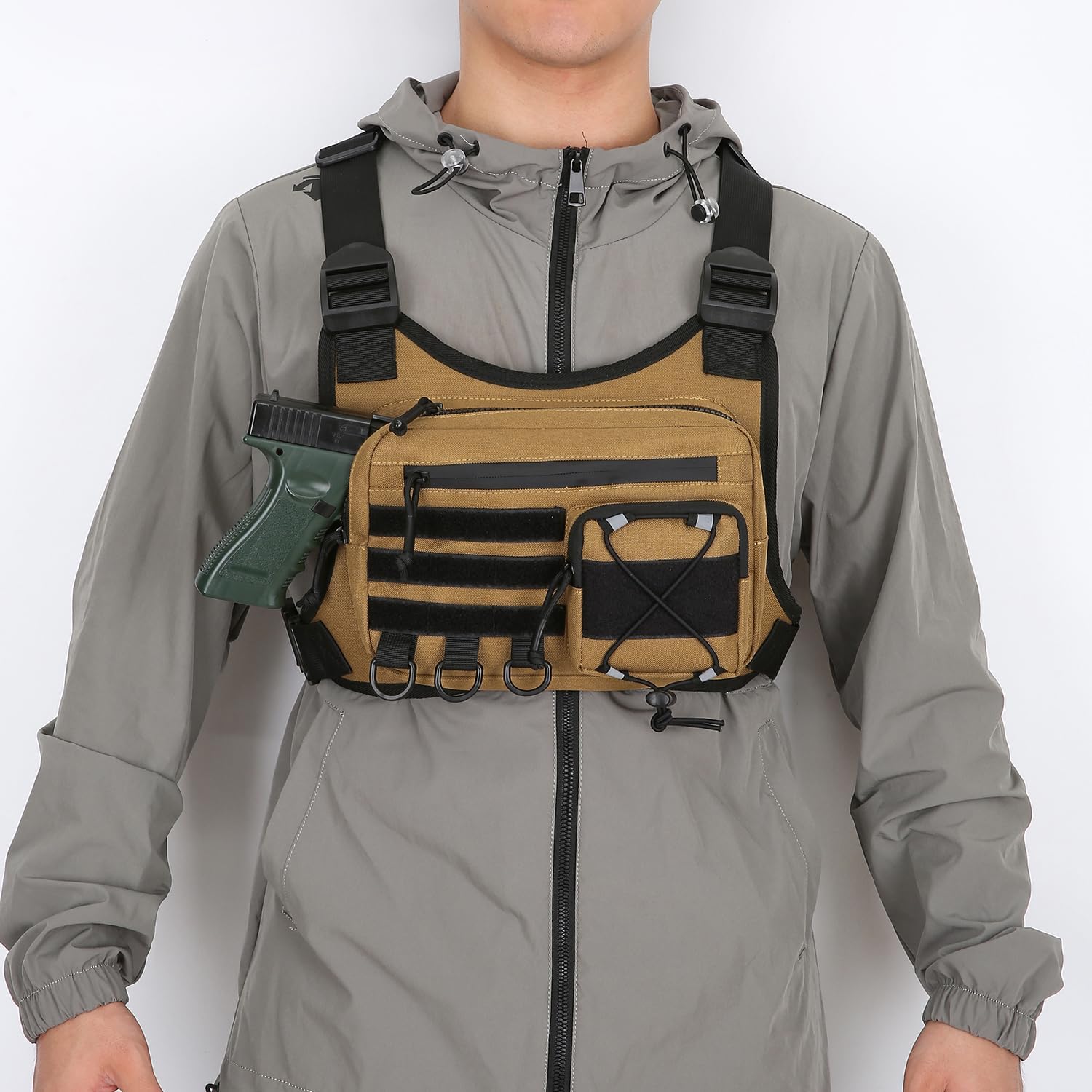 Koculemi Outdoor Sports Chest Bag for Men, Chest Vest Holster Fits Most Pistols, Adjustable EDC Travel Chest Pack for Running, Hiking, Workouts