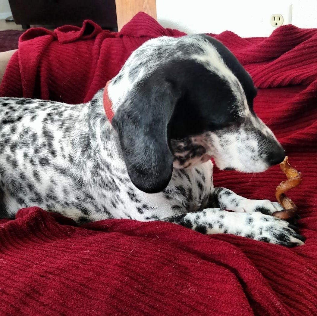 All of our spiral bully sticks for dogs are made with No artificial ingredients, No hormones, and No chemicals from free range, grass fed cattle. These all-natural beef pizzle dog treats are long-lasting and full-sized. We source the highest quality ingredients ensuring a premium low-odorpet product that your dog will love.