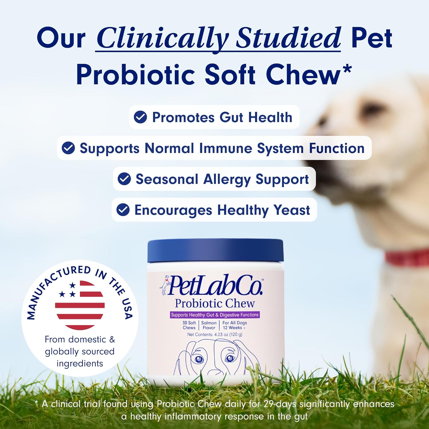 New Clinically Tested Formula – With the success of our premium dog probiotics, we teamed up with experts to create a delicious new advanced salmon-flavored formula! With all the benefits of our top-selling soft pork chew plus new powerful ingredients