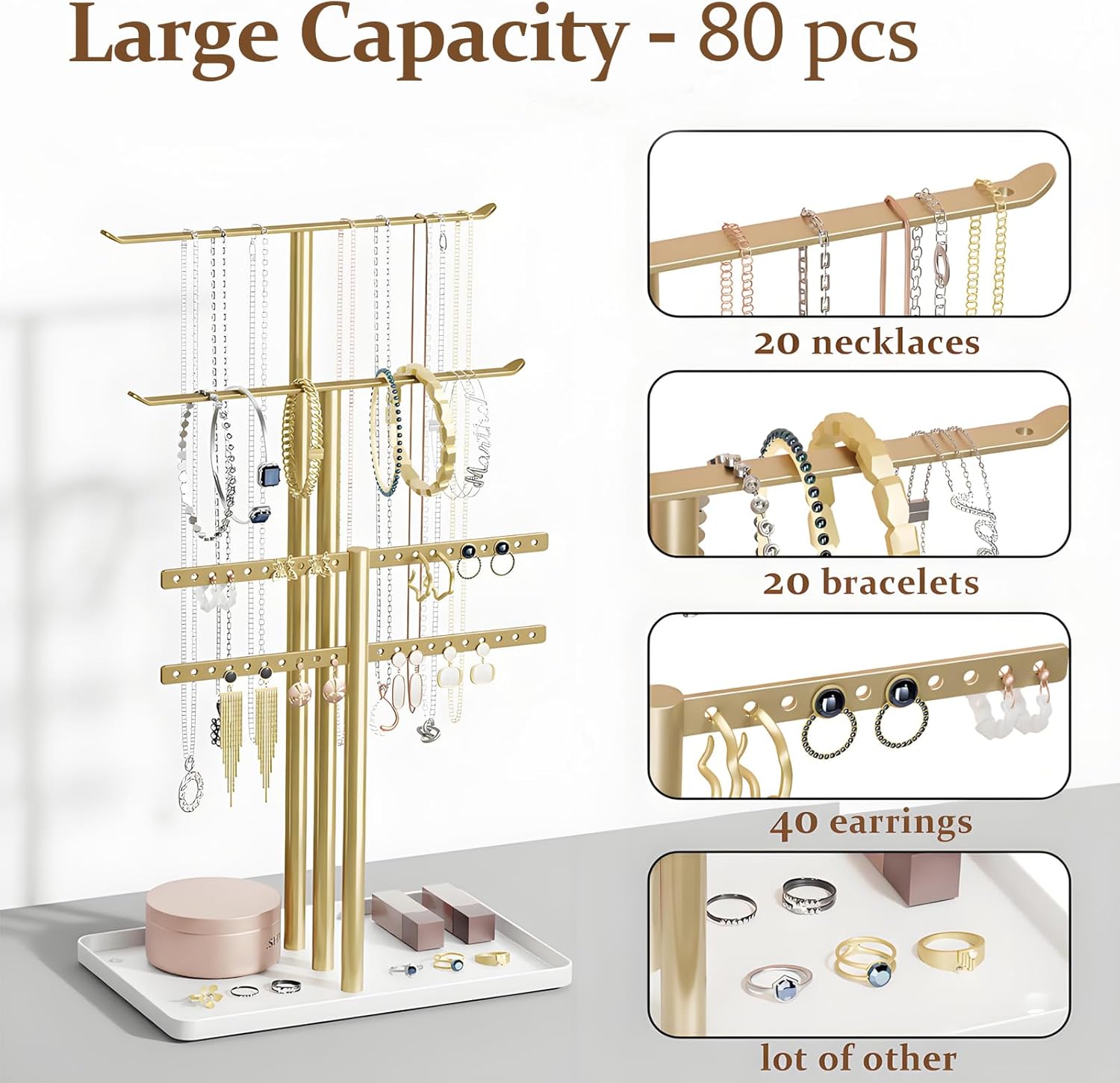 【Large Capacity & Well organized】 This Jewelry Organizer has 3 tiers ( 4 bars), convenient to classify and store lots of different jewelry