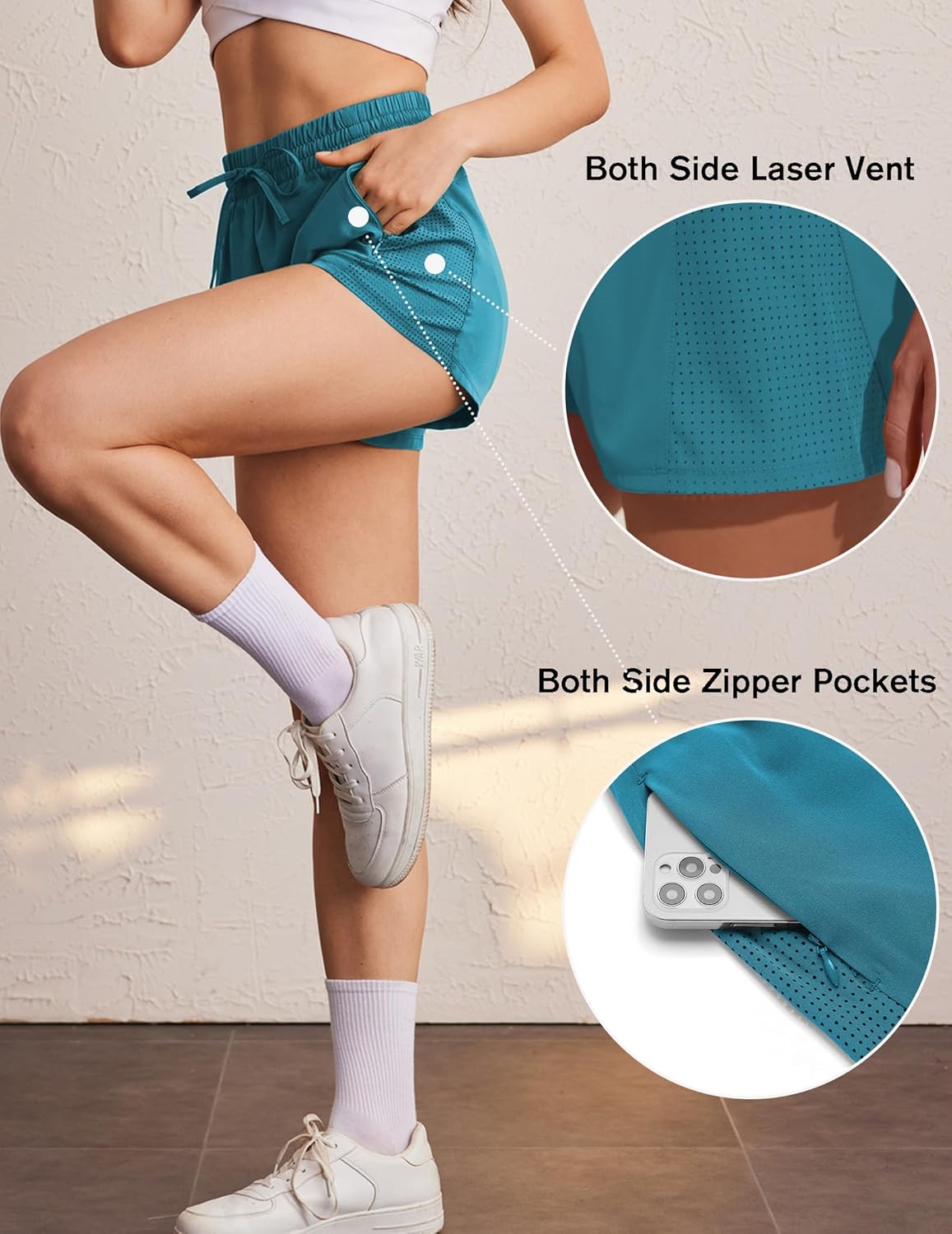 PINSPARK Active Shorts Women Quick Dry Gym Shorts with Zipper Pockets Zipper Pockets Athletic Shorts womenZipper Pockets Athletic Shorts women