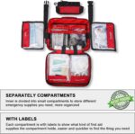 LABELLED FIRST AID KIT COMPARTMENTS – Easy and simple for every adult to use, so you can get to the first aid supplies you need quickly and accurately in the event of an emergency. The inner of this emergency kit is with compartments, also each compartment is with label, allowing you to find what you need when the first aid kit travel is properly organized according to the labels, allowing you to face emergencies with ease and confidence.
