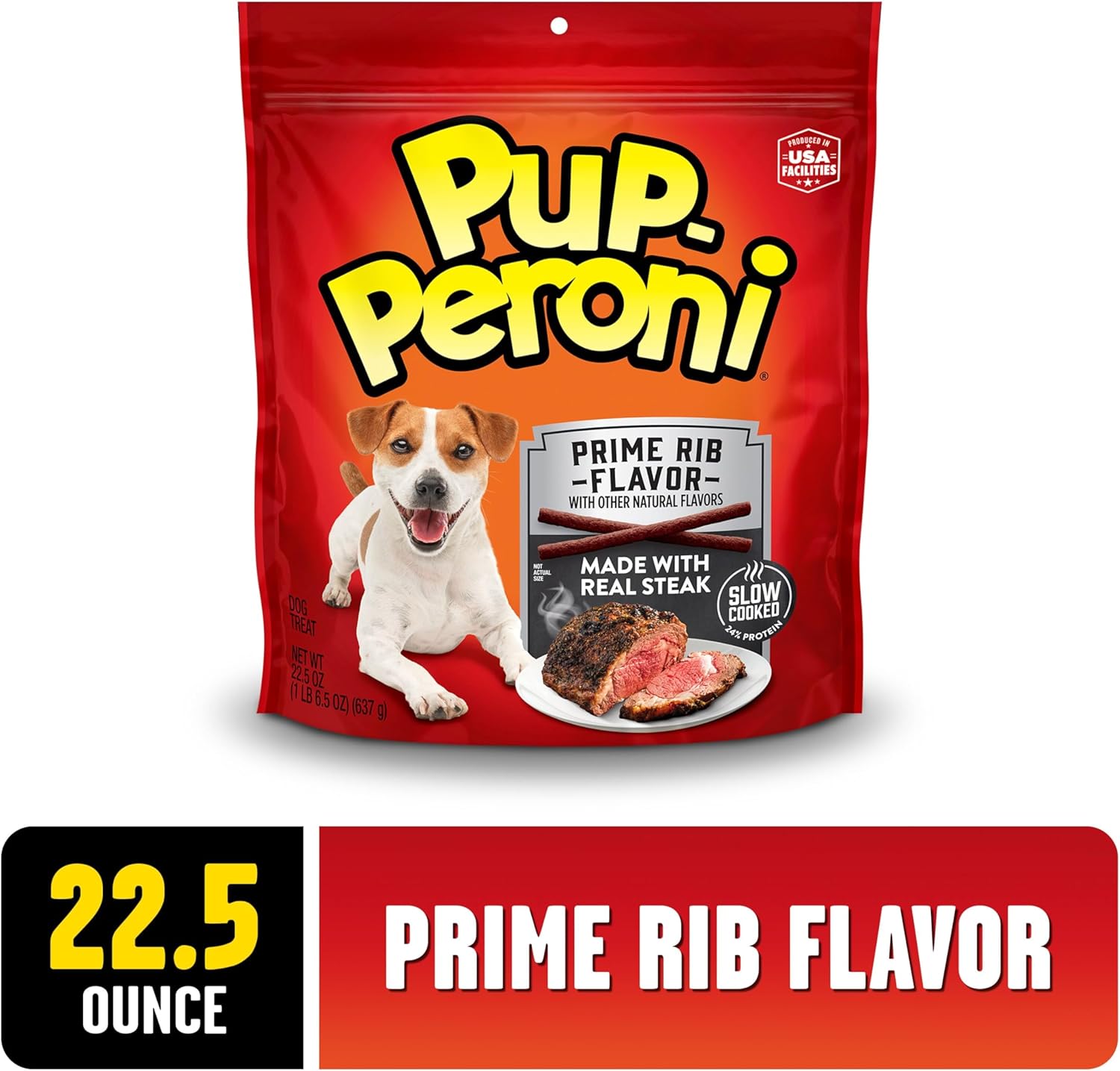 Contains one (1) 22.5-ounce bag of Pup-Peroni Prime Rib Flavor Dog Treats