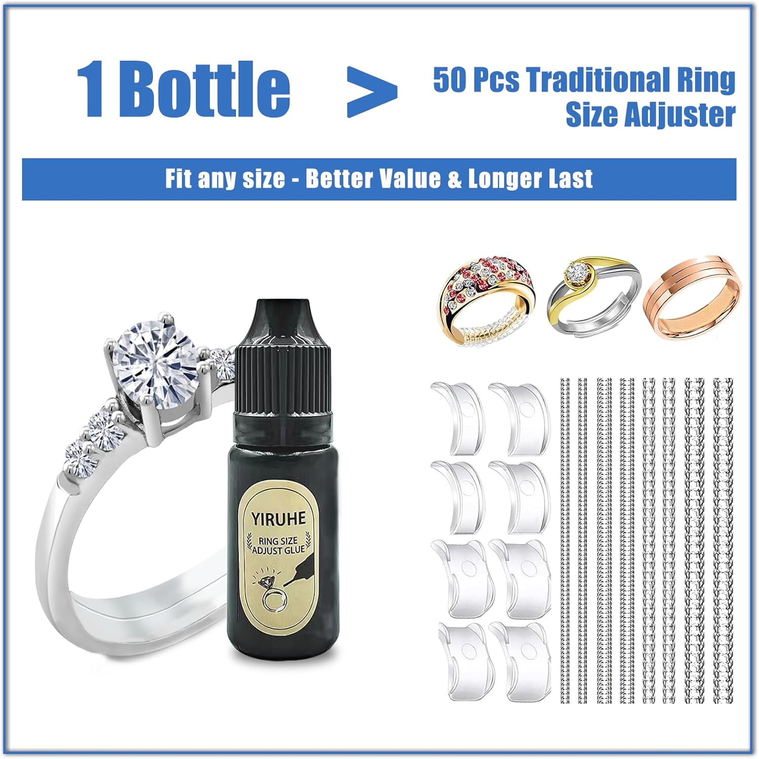 Ring Sizers for Loose Rings Ring Size Adjuster Fit Any Rings Guards Ring Spacer for Loose Rings Women Invisible Traceless Glue Ring Resizer with UV LED Lamp