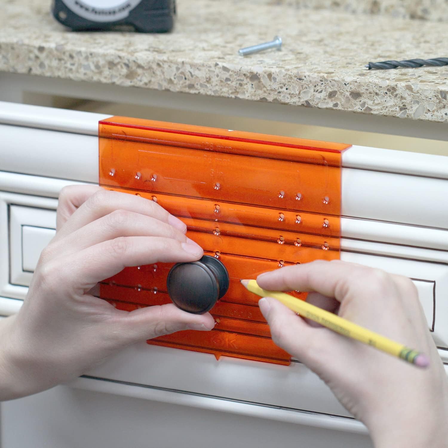 MUST HAVE: This Cabinet Door & Drawer Drilling Template will allow you to install your pulls and knobs flawlessly.