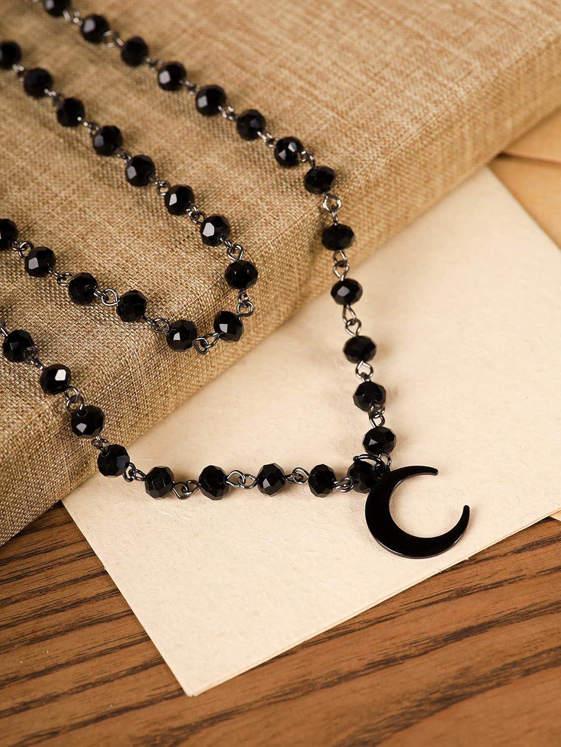 Sacina Gothic Layered Black Crescent Moon Choker, Black Moon necklace for Women, Gothic Goth Necklace, Goth Jewelry, Christmas Jewelry Gift for Women