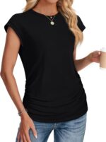 SAMPEEL Womens Summer Tops Cap Sleeve Crew Neck T Shirts Loose Fit Side Shirring