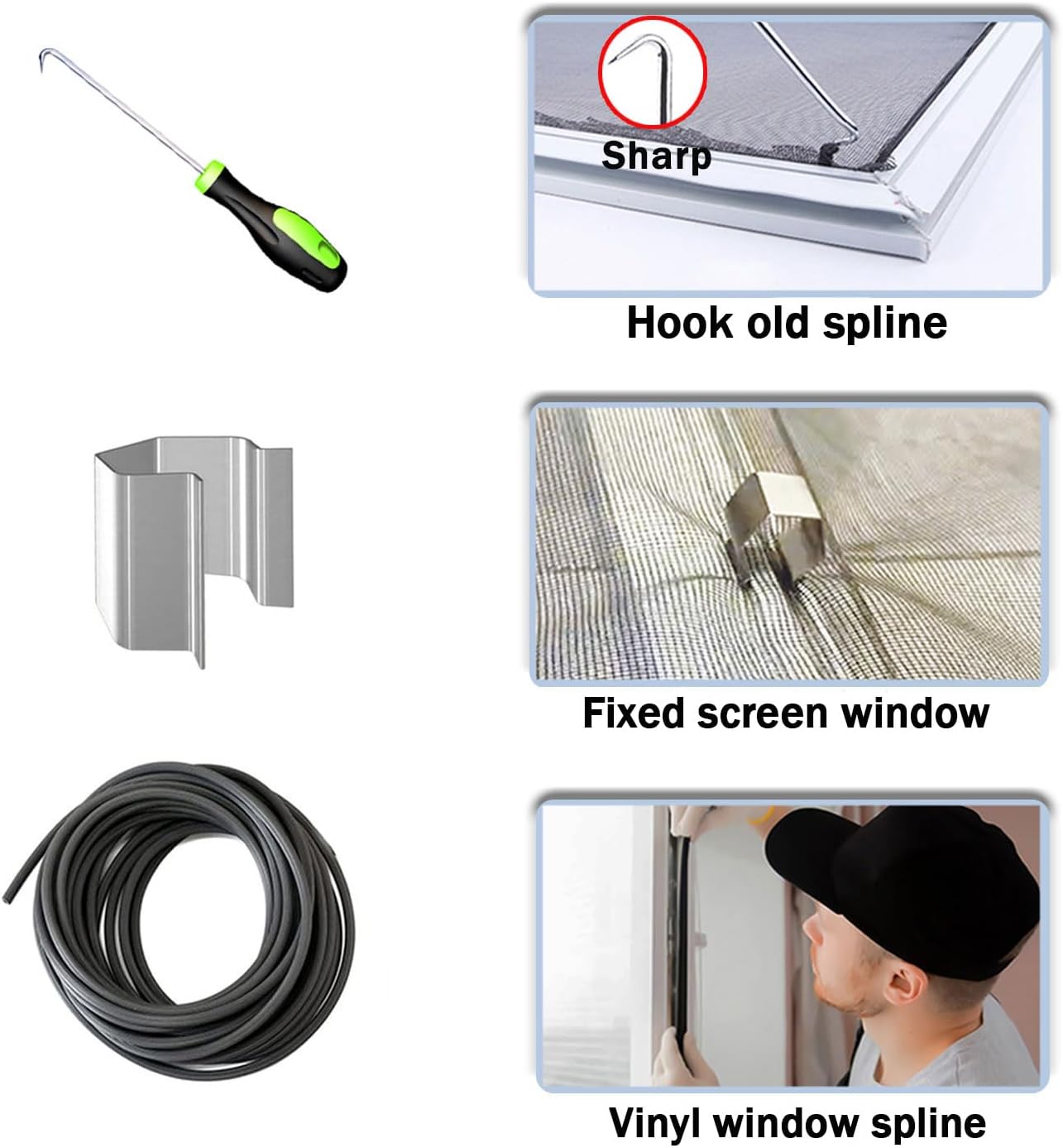 🏠【SUFFICIENT SPLINE&CLIP】 VINYL SPLINE – 32FT length can install more screens. This spline has high tensile strength and will not break. The hollow design is easy to press into the groove. SCREEN HOLDER CLIPS-8pcs is enough to fix a window and can be used repeatedly. Made of manganese steel and nickel-plated materials, hard and durable, with nice flexibility and smooth touch, keeping the screen fixed firmly.