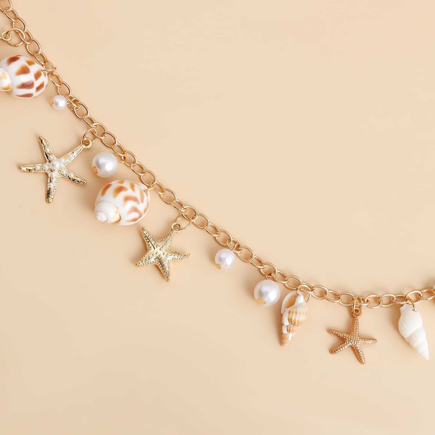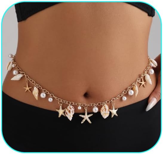 Seashell Starfish Chains Waist for Women Boho Conch Body Chains Pearl Starfish Chains Waist Summer Beach Body Jewelry