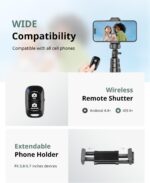 SENSYNE 62″ Phone Tripod & Selfie Stick, Extendable Cell Phone Tripod Stand with Wireless Remote and Phone Holder, Compatible with iPhone Android Phone, Camera