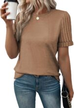 SHEWIN Women’s Short Sleeve Summer Tops Crewneck Knit Solid Loose Casual Basic T Shirts Tee Blouses