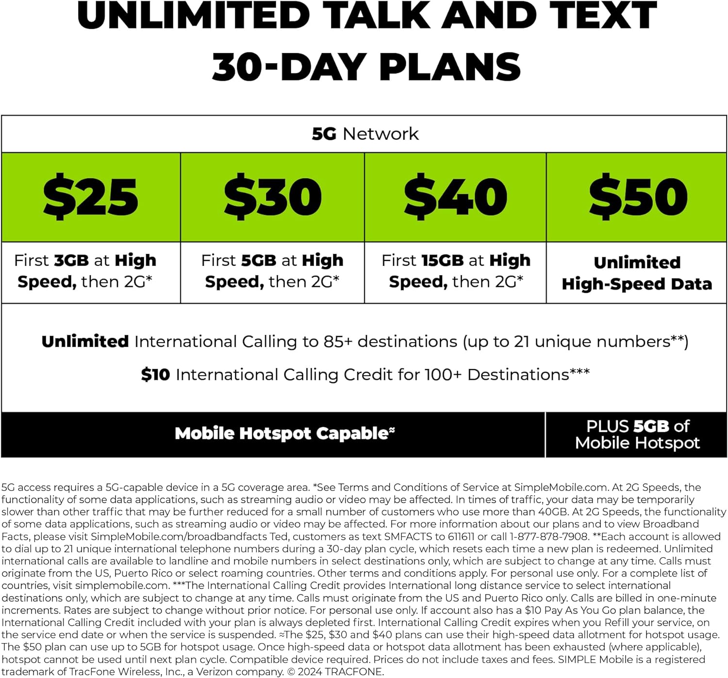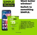 Compatible with SIMPLE Mobile data and unlimited talk & text plans starting at $25/mo plus taxes and fees. To find the SIMPLE Plans available to purchase, please go to our SM – Amazon Brand Page linked below the product title.