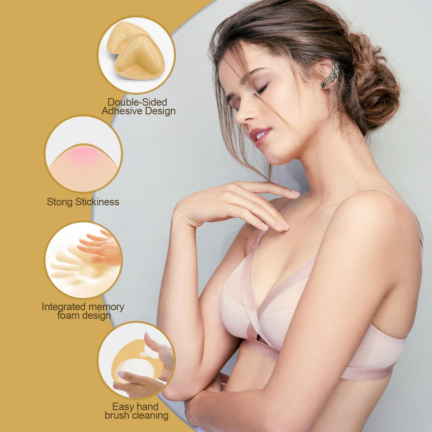 Sticky Bra Inserts Double Sided Strapless Reusable Adhesive Bra Push Up Bras for Dresses Bikini Swimsuit Sports Bra
