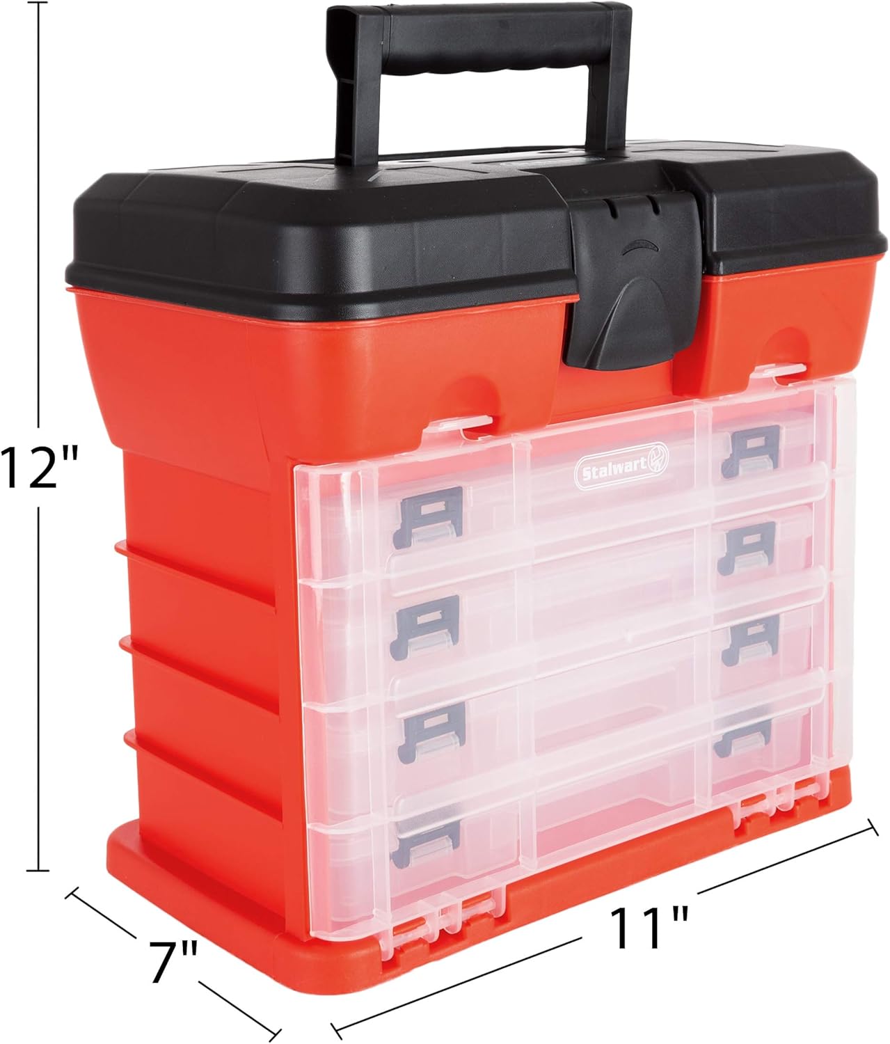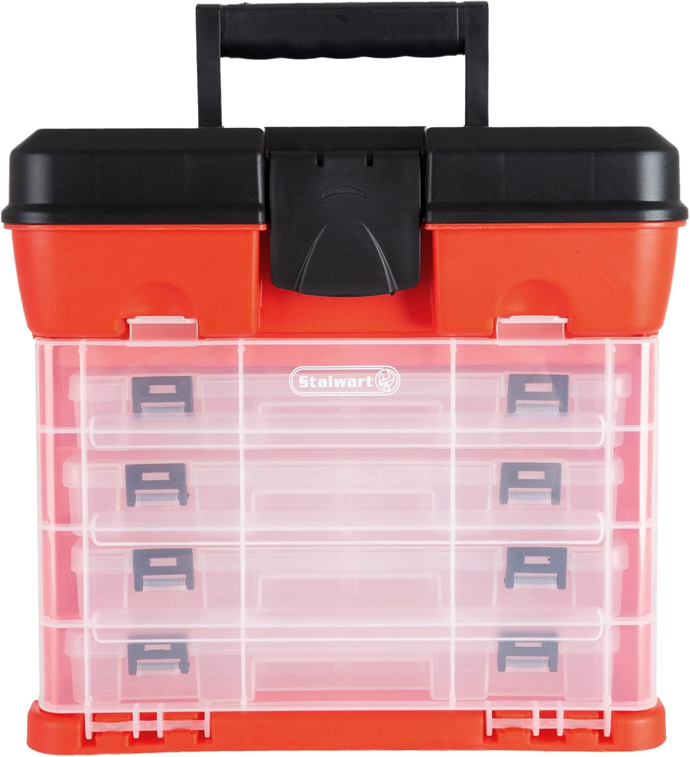 Keep all your hobby tools and small supplies neatly sorted and easy to carry with this multi-compartment Storage Tool Box by Stalwart. The top section of the portable organizer box lets you store and quickly access your most-used tools, while the four multi-compartment trays hold a sizable collection of small mechanical parts, hardware, jewelry components, fishing tackles, or crafting supplies and can be used separately to suit your specific storage needs. Constructed from durable, high-impact polypropylene plastic, this versatile small tool box organizer holds up to its full space capacity. Stalwart, for storage solutions that are SMART, STRONG, and SECURE. IMPORTANT: STALWART is committed to providing the consumer with the absolute best price and value on our entire line of products. NOTE: This is an exclusive product of STALWART and ONLY Tool Box Organizers and Storage by STALWART are GUARANTEED to be genuine. Avoid buying counterfeit products and transacting with unauthorized sellers.