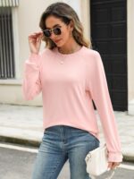 Womens Crewneck Tops Casual Long Sleeve Shirts Loose fall Tops