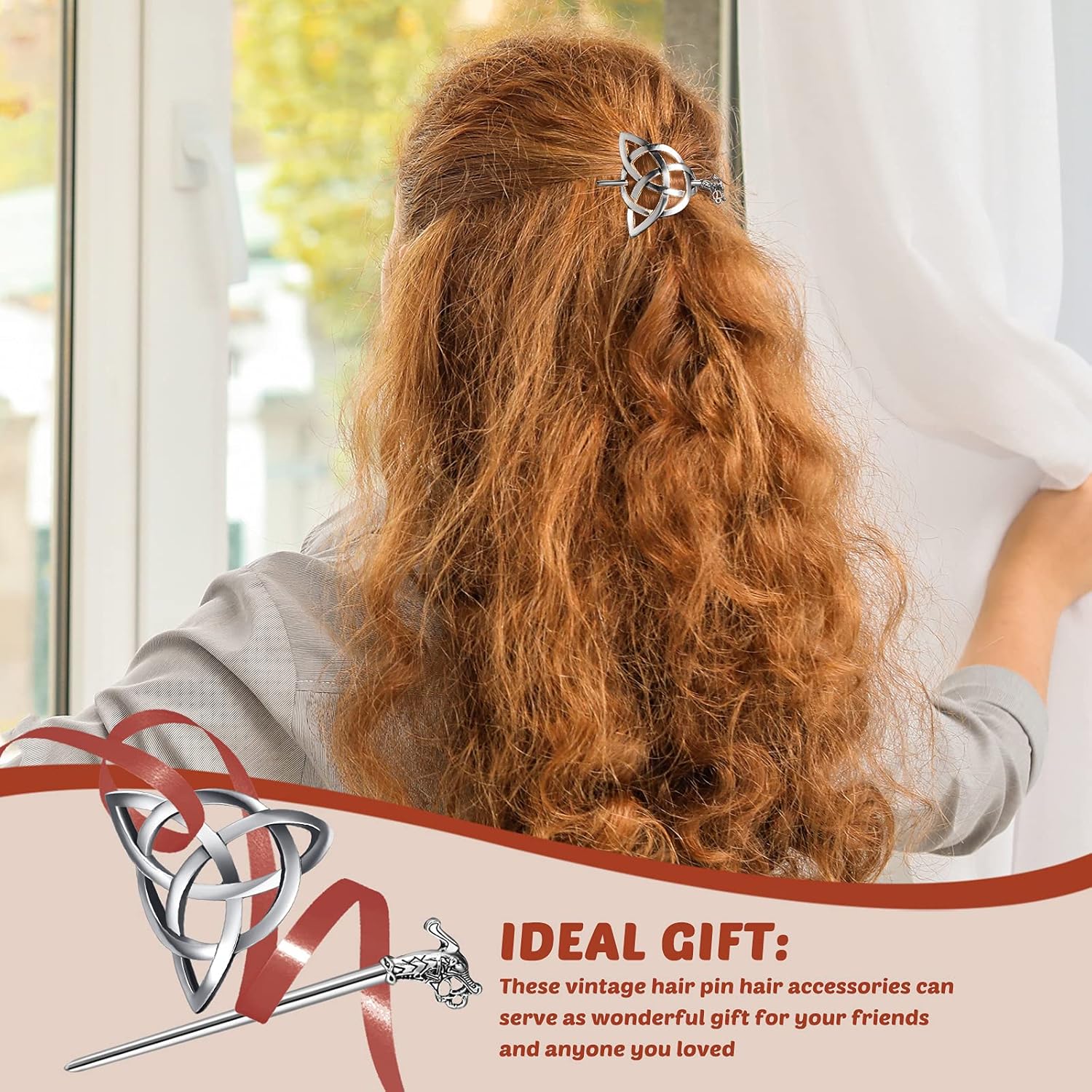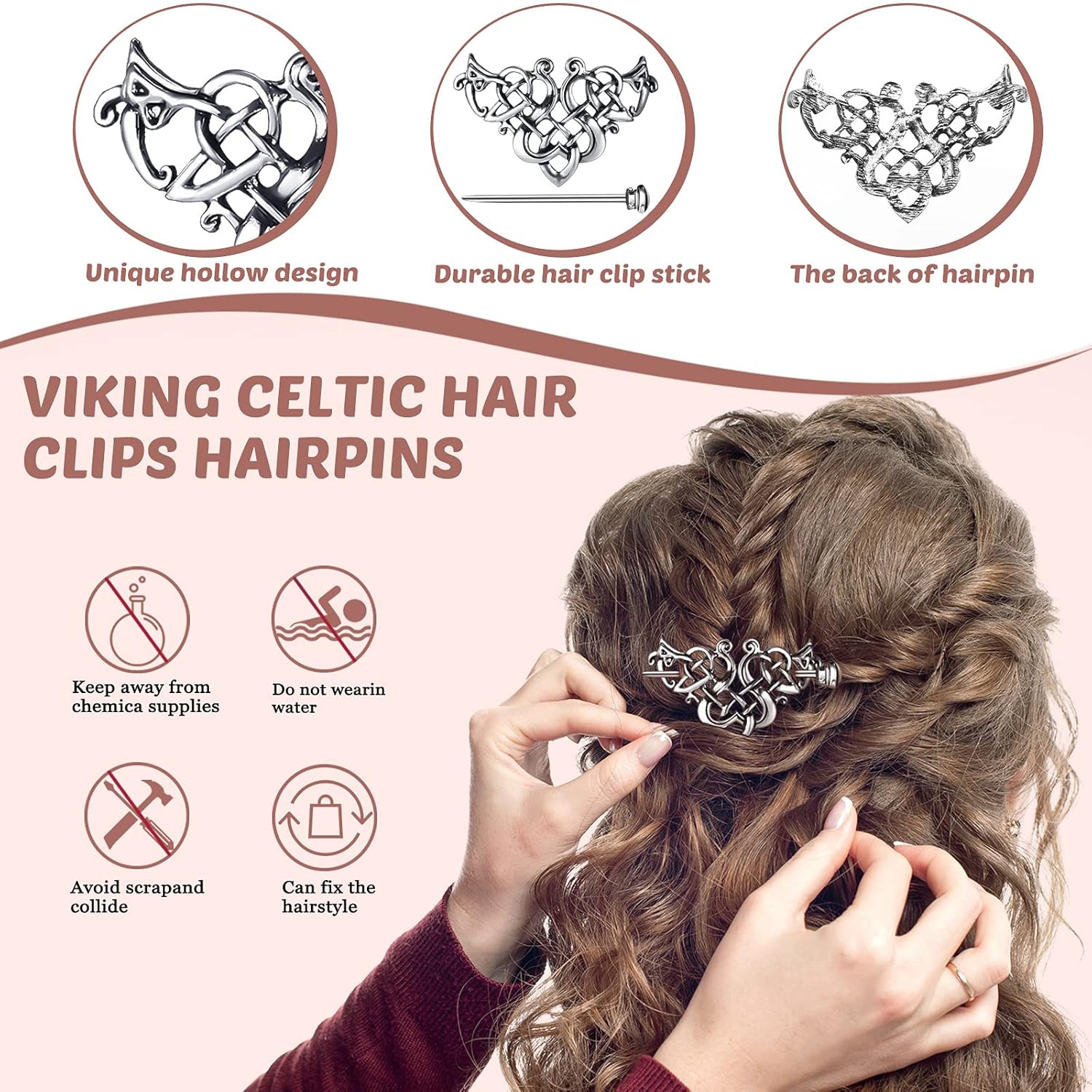 Durable material: these Viking Celtic hair clips hairpins are made of zinc alloys, which are sturdy in construction, hard to break, and are durable; The surface is polished and electroplated, shiny, not easy to rust, very suitable for holding, decorating and fixing your hair