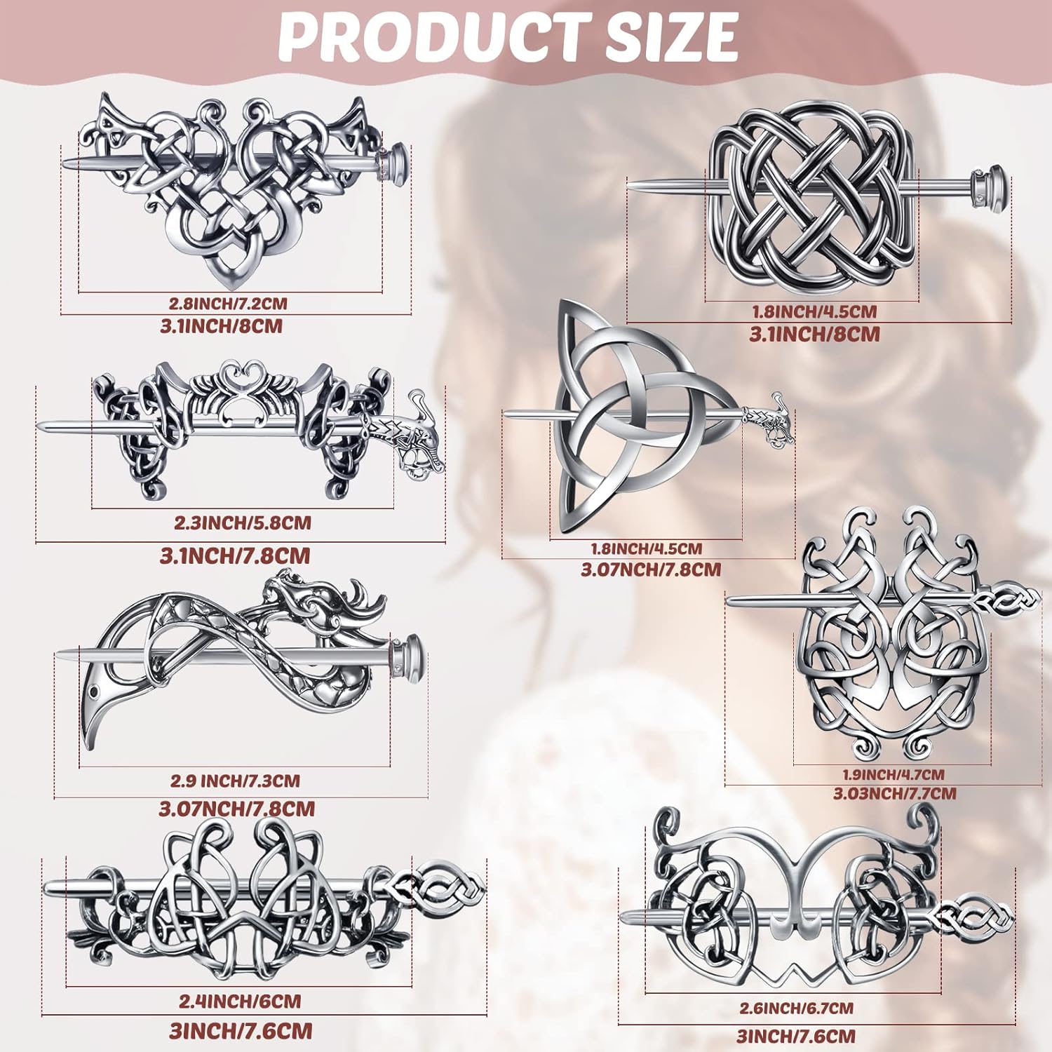 You will get: there are 8 pieces of Celtic hair slide hairpins in different styles, you can choose the style to match your hairstyles, makeup and daily dresses, allow you to change different hairstyles and outfit every day and keep a good mood